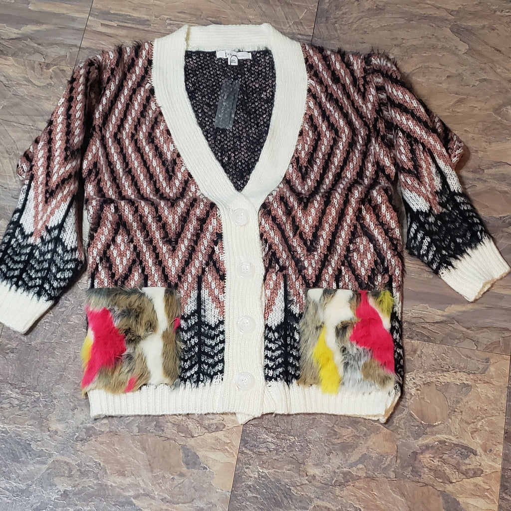 Long Sleeve Open Sweater with Fox Fur Pocket