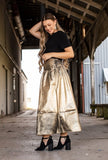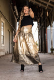 fun metaillic maxi skirt with paint splatter.