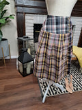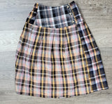 Multi color plaid wool skirt with 3 button detail on waistband.