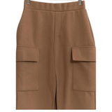 This wool like brushed twill set is perfect set to take from day to night. The skirt features side flap pockets. The high rise design is ultra-flattering. While the hip higging fit and high split offer a flirty touch.