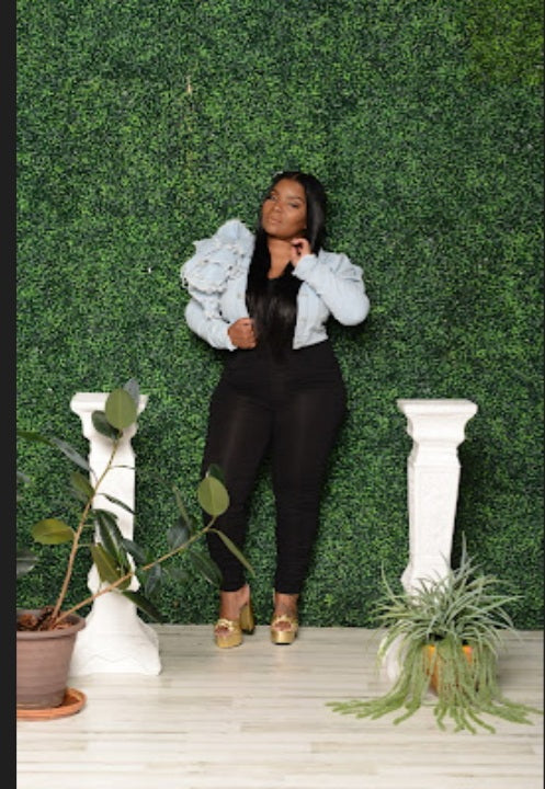 Denim stretch Jacket with ruffle shoulder detail